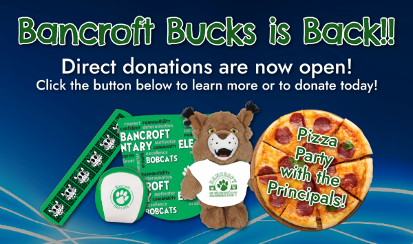 Funds raised through Bancroft Bucks provide 50% of the PTO budget that supports student activities all year. We need everyone’s help to make Bancroft Bucks a success! To see how your donation is used click here for more information.