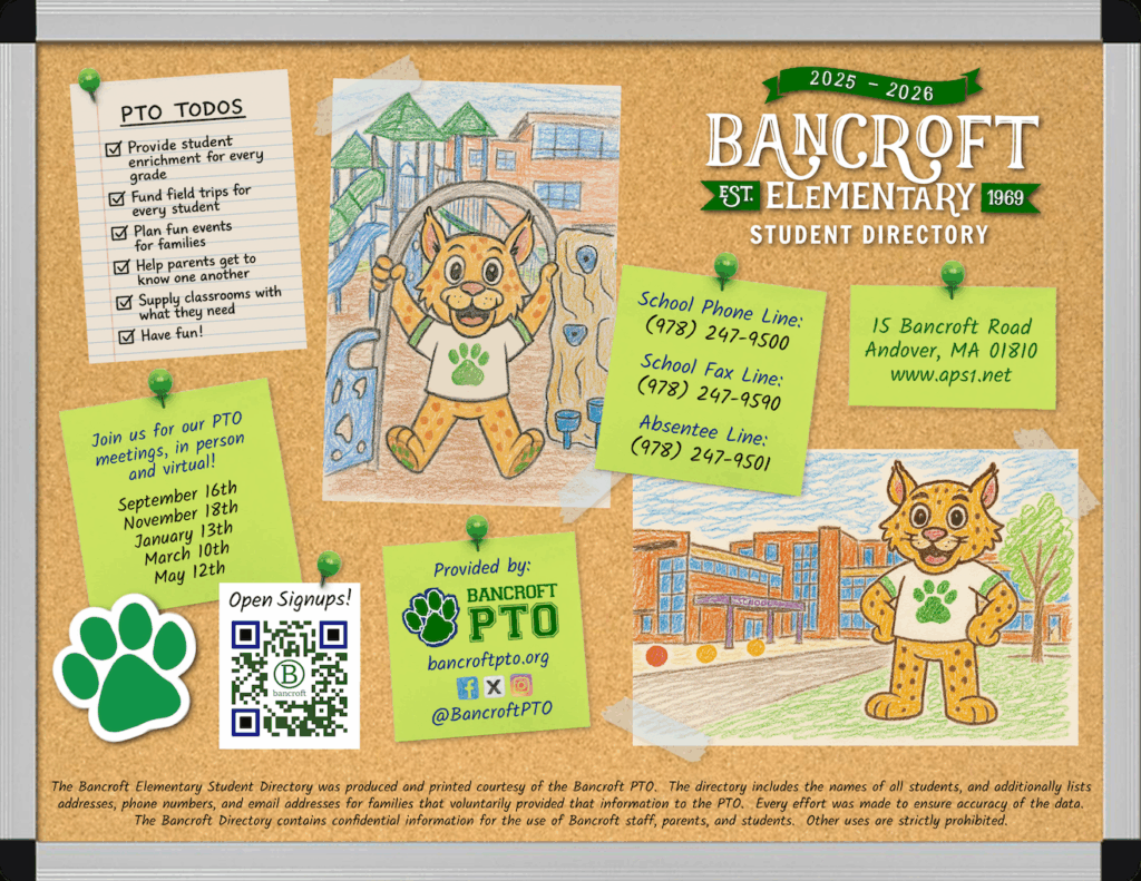 If you have any questions or concerns, please reach out to us at studentdirectory@bancroftpto.