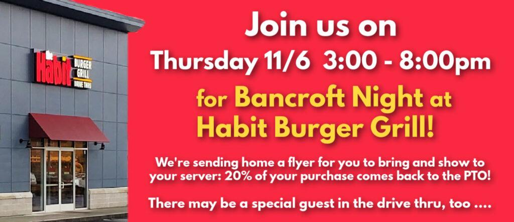 This Thursday, November 6 from 3:00-8:00pm, The Habit Burger Grill will be donating 20% of its proceeds back to the Bancroft PTO!
